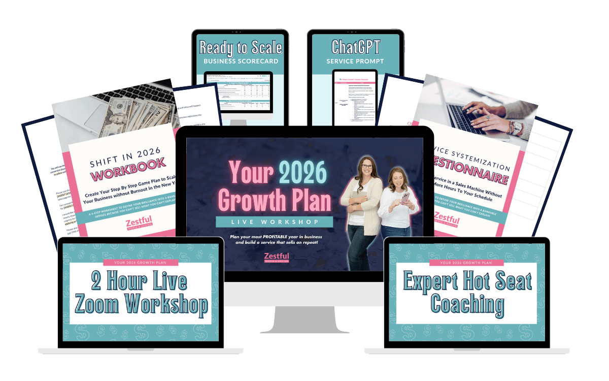 Join our 2-hour LIVE workshop to plan your most PROFITABLE year in business and build a service that sells on repeat!