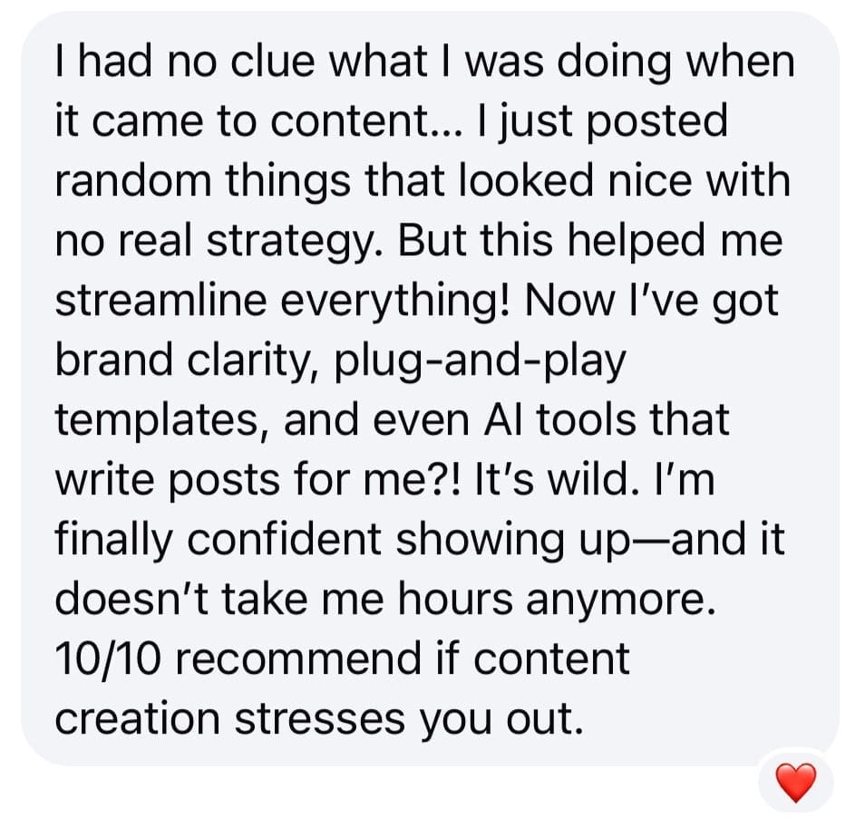 We created it to solve our own problem first—because we were tired of starting from scratch every time we needed to post and not getting clients because of it. After going through this system, we’re booking an average of 2-5 new DFY high ticket client contracts a MONTH.