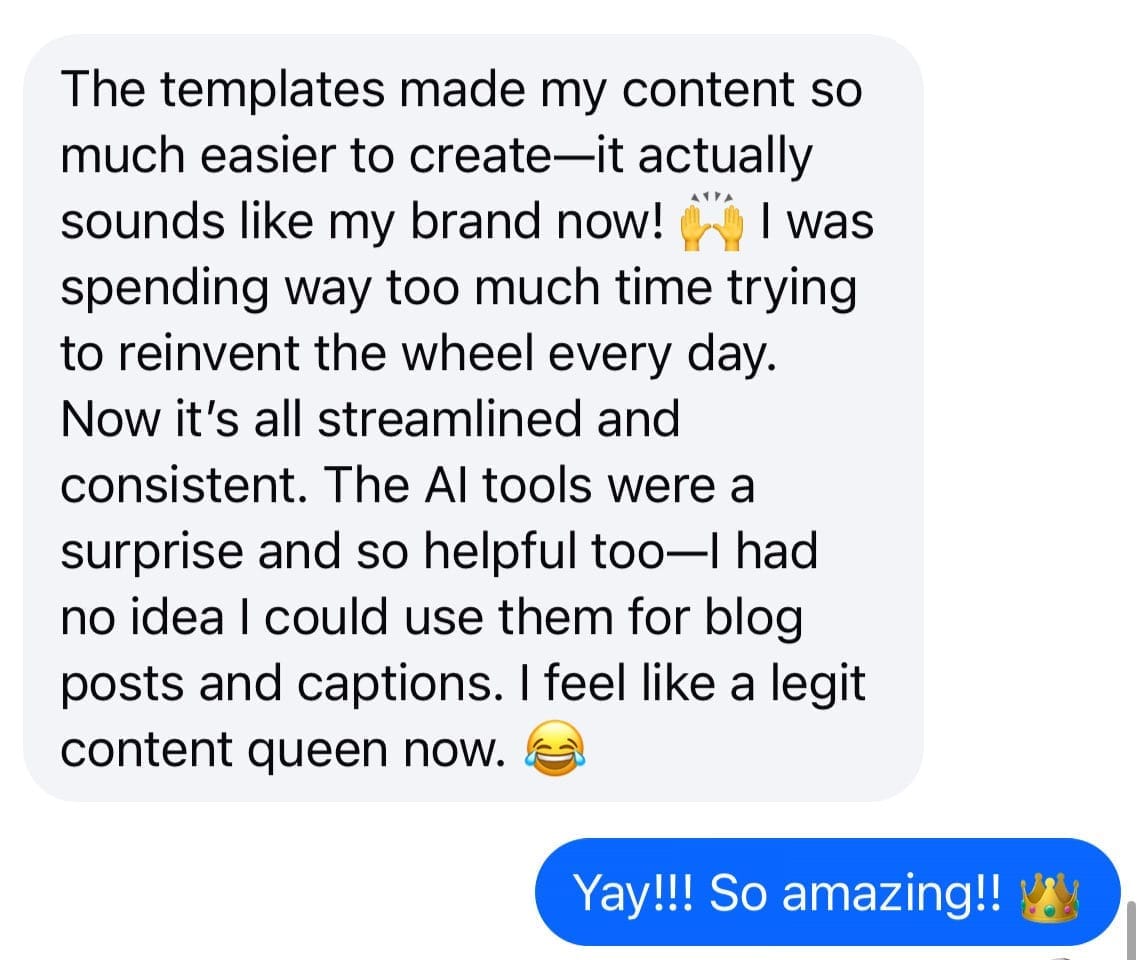 Easy! Just add our Brand Voice & Content Style Worksheet at checkout. It’ll help you define your voice and tone so you can feed that info into ChatGPT and generate content that sounds like you—not a robot.