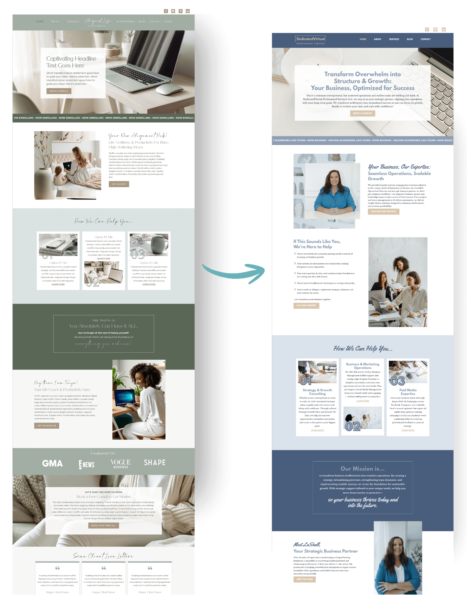 Conversion-Focused Copywriting (Optional) — Don’t have time to write your own words? We’ll craft your website copy so it attracts dream clients and drives action.